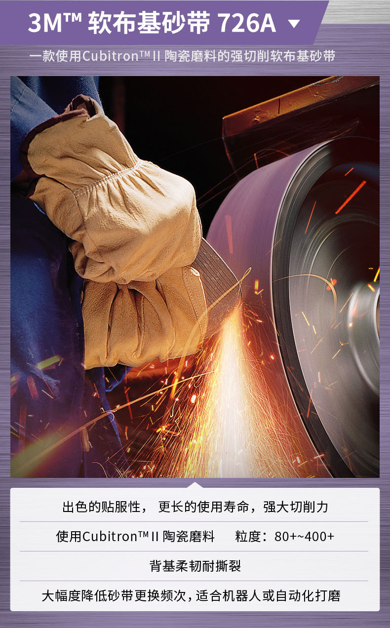 3m抛光研磨砂带984F 36目陶瓷磨料砂带10