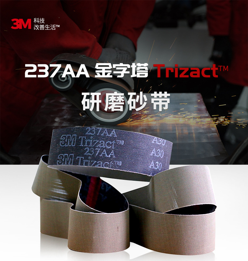 237AA是一款业界公认的高性能、免堵塞砂带,以其卓越的研磨效率和长久的使用寿命而闻名。它属于3M旗下的明星产品线——Cubitron II陶瓷氧化铝磨料系列