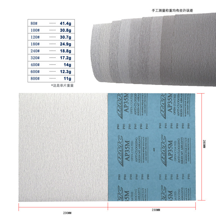 理研A35PM兰-CW800# 方形干磨砂纸木工打磨抛光乳胶涂层砂纸