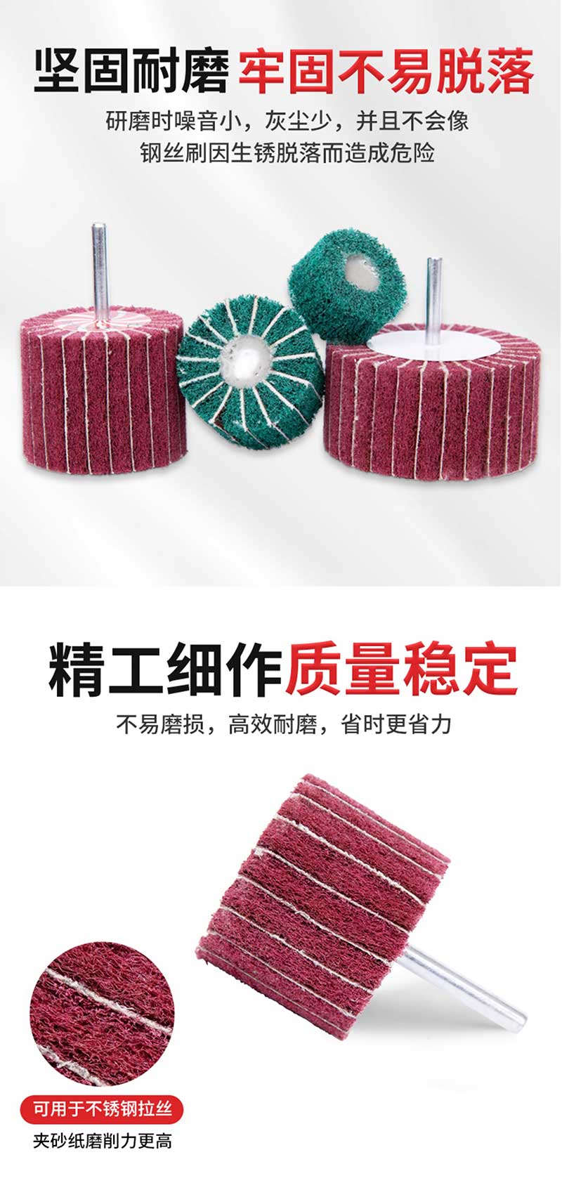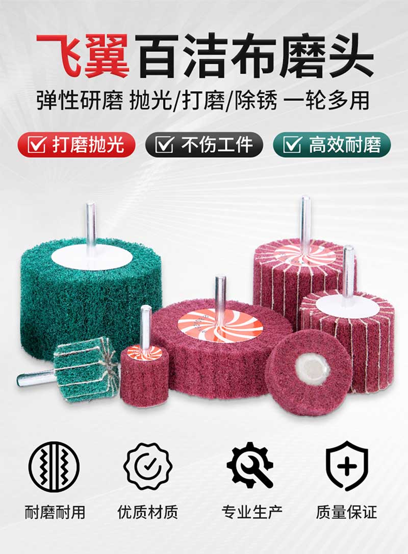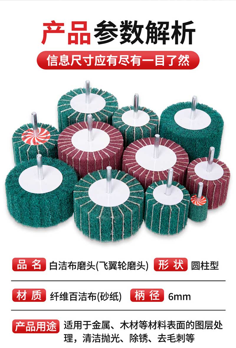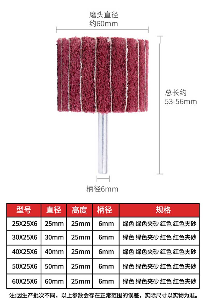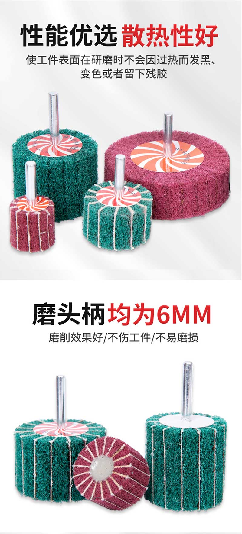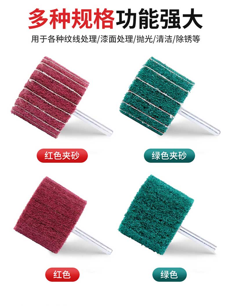 红色、绿色夹砂带柄6mm百洁布磨头 180目与240可选